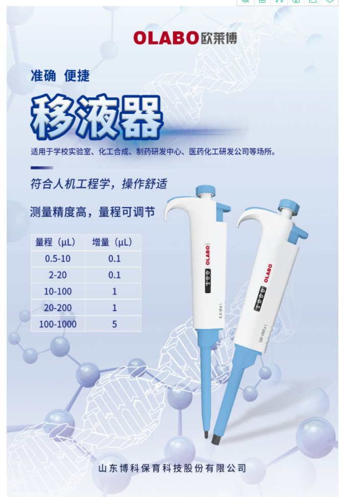 國產(chǎn)OLABO,B系列單道可調(diào)式移液器10-100μl