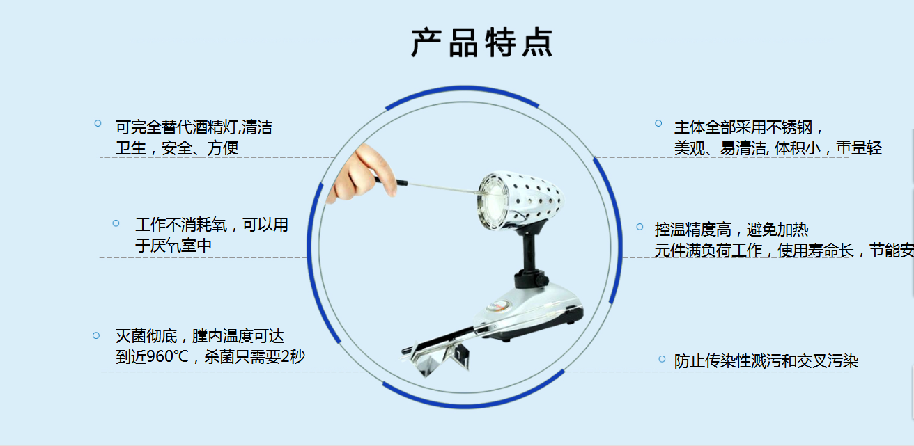 用火焰消毒是古典的微生物學方法,但由于會產生氣溶膠, 并使安全柜柜內氣流紊亂,盡量不要使用。 酒精燈是目前實驗室常用的低中溫加熱及灼燒滅菌工具, 但是酒精燈外焰用來消毒揮發的氣體會累積在安全柜內,點火時很容易產生氣爆現象而遭火焰灼傷。